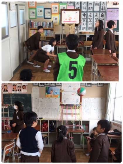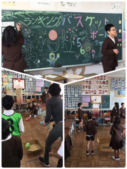 6年3組は「バスケットボール天国」をしてくれました。鈴木先生、頑張っています!