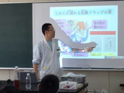 お薬講座の最後には、担任の先生が悪い先輩役となって、タバコを誘うワークショップもしました。子どもたちはきっぱり断ることを学んだと思います。