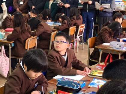 先生の発問を聞き逃さないように、よく集中して授業が進みます。