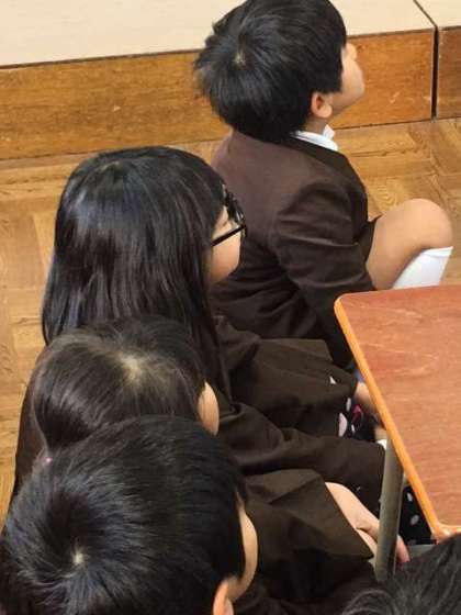 2年2組の読書タイムの様子です。今朝は絵本でなく、お話の読み聞かせをしてくだっています。