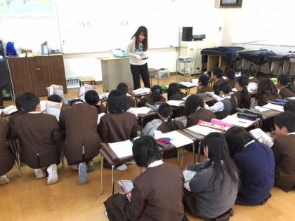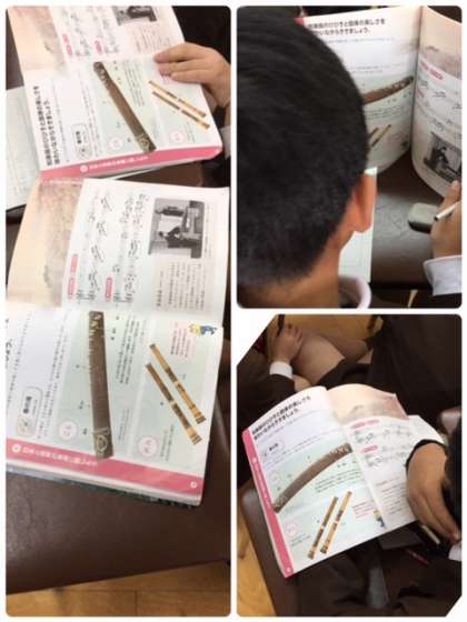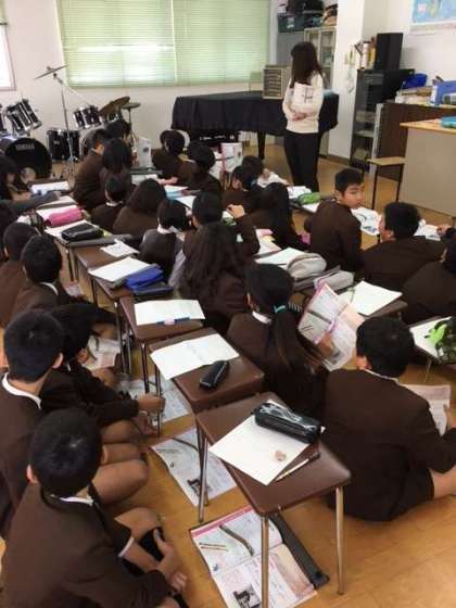 5年1組は音楽室で音楽の授業です。こちらは2組担任の福間先生がご指導してくだっています。宮城道雄作曲の箏と尺八による「春の海」の鑑賞をしていました。