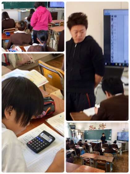 6年生は、習熟度別少人数授業で算数を勉強しています。6年生1組から3組の児童を、4つのクラスに編成して、越智先生、坂田先生、米田先生、田中先生が担当します。