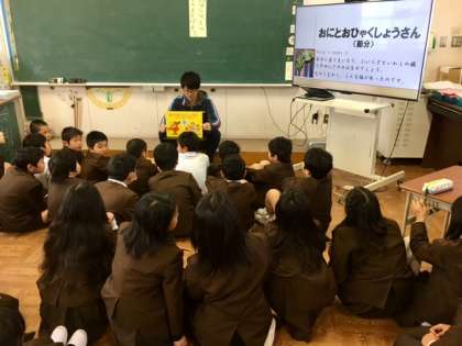 4年2組の読書タイムです。4年2組の紙芝居の読み聞かせはもう定着しました。図書館開放でも、紙芝居の読み合わせをしている子どもたちを見ます。すごい影響力があります。