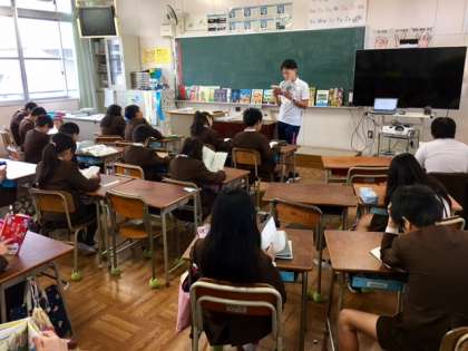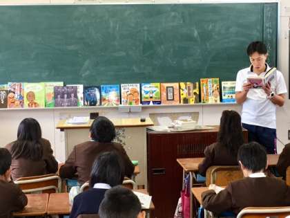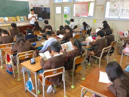 4年1組の読書タイムです。自読に取り組んでいます。学級文庫の本を探すことも大切ですが、先生がオススメの本を紹介することは、子どもたちの興味・関心を高めるためにも非常に有効です。担任の石倉先生はとても研究熱心です。たくさんの本を紹介してくださっています。