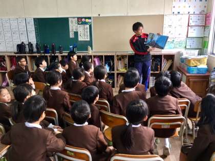 3年1組の読書タイムです。担任の田中先生が読み聞かせをしてくださっています。子どもたちの表情からも、お話が大好きって聞こえてくるようです。