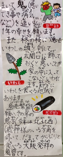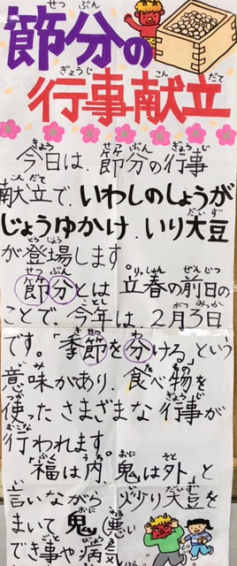 さて、今日は節分の行事食です。今週土曜日は節分、子どもたちは学校でも季節感を味わっています。