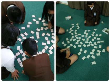 5年生の三学期、日本の古典にも親しもうということで、百人一首に挑戦しています。けっこう上の句で取る子もいます。