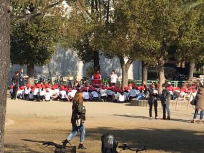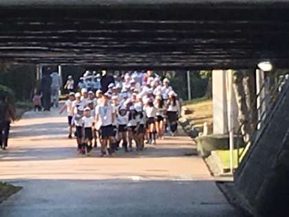 中学年・高学年もスタート場所に到着しました。まもなくスタートします。