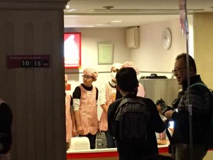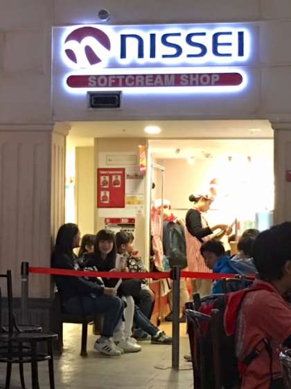 ソフトクリームショップで体験しています。