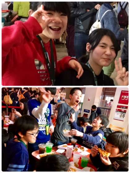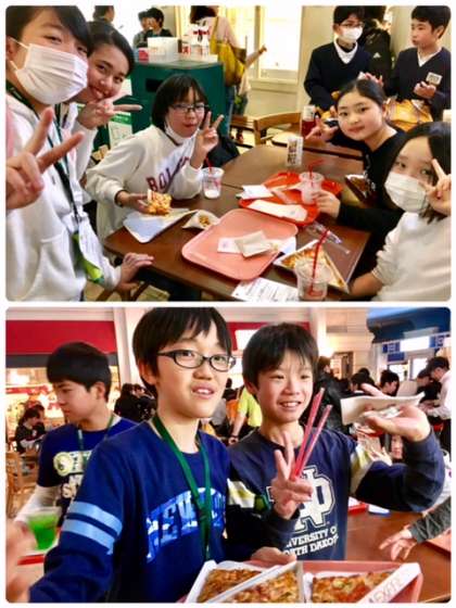 お昼の時間になりました。職業体験で得た収入やミールクーポンを使って、思い思いの食事を食べています。