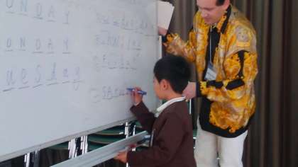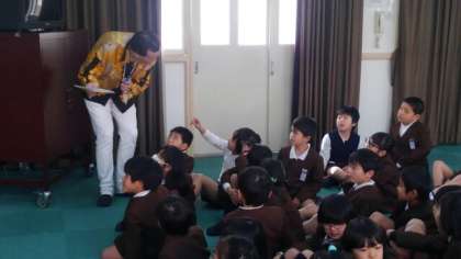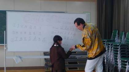 5時間目は2年2組がアルファベットに親しんだり、アクティビティに挑戦したりしています。