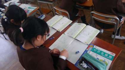 5時間目、3年生は3つのコースに分かれて、かけ算のひっ算のまとめをしていました。
