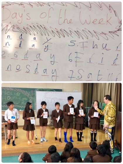今日は4年生がMATT先生の授業を受けます。最初は「Day's of the Week」曜日についてです。