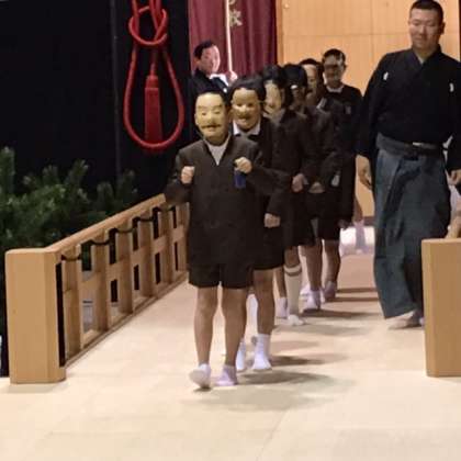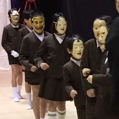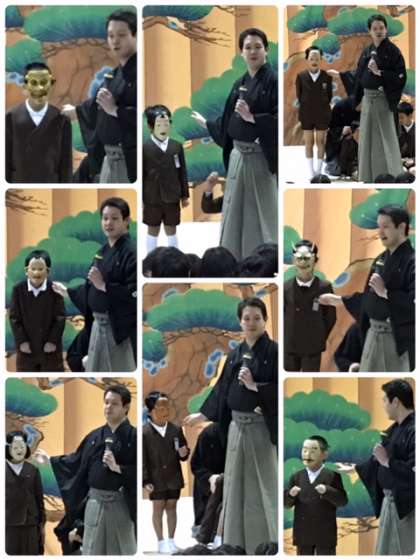 いよいよ児童の代表が能面をつけて橋掛かりから舞台に登場しました。