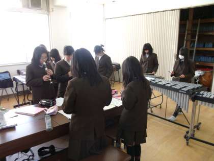 はじめに各楽器ごとに集まって練習をし,最後にみんなで一度合わせてみましたが...まだまだ練習が必要そうです(苦笑)。でも,みんな楽しそうに練習していたので良しとしましょう!これから練習を重ねて,しっかりと合奏ができるように頑張りましょう♪
