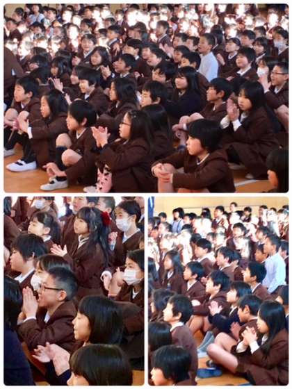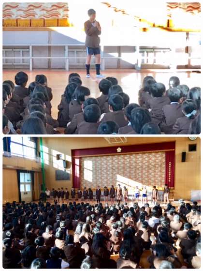 水曜日の朝は「なかよし集会」です。今朝は運動委員会のみなさんが委員会活動の紹介をしてくれました。体力を向上するための、いろいろな運動を紹介してくれています。子どもたちは運動委員会の紹介に拍手喝采です。