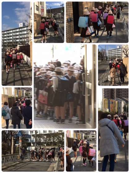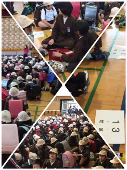 地区別子ども会のあと、講堂に集まり地区別集団下校を行いました。