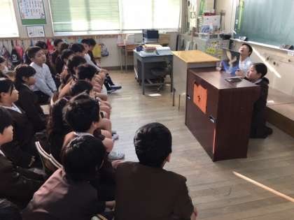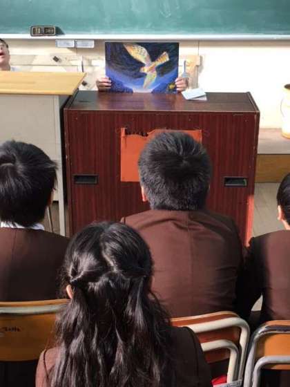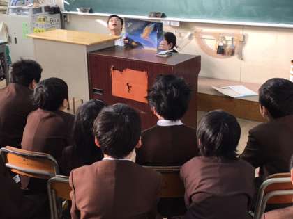 先週に引き続き、木曜日の読書タイムは図書委員会のみなさんが、紙芝居の読み聞かせをしてくれています。