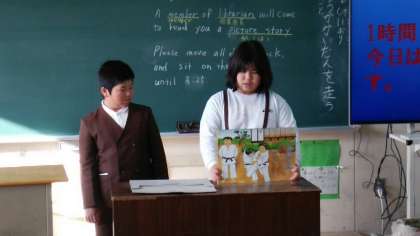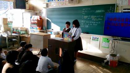先週に引き続き、木曜日の読書タイムは図書委員会のみなさんが、紙芝居の読み聞かせをしてくれています。
