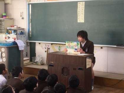 先週に引き続き、木曜日の読書タイムは図書委員会のみなさんが、紙芝居の読み聞かせをしてくれています。