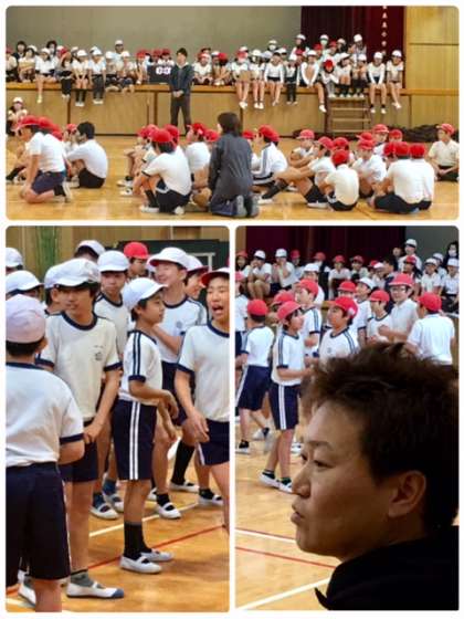 これは、中学校へ進学を前に同じ中学校下の川北小学校、出来島小学校、大和田小学校の6年生が一同に会し交流を深めるものです。