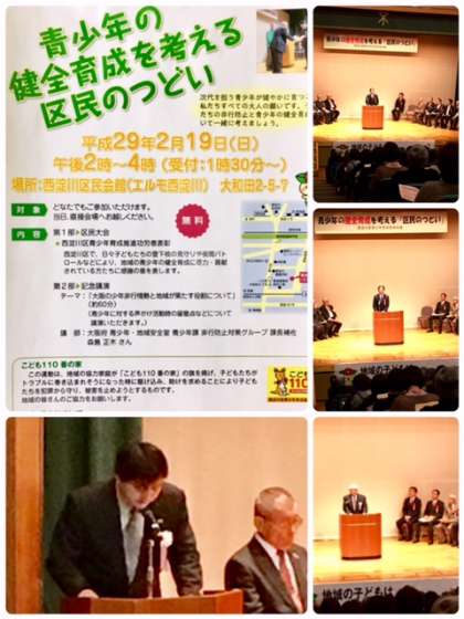 平成29年2月19日(日)午後2時より、西淀川区民会館(エルモ西淀川)にて、「青少年の健全育成を考える区民のつどい」が開催されました。