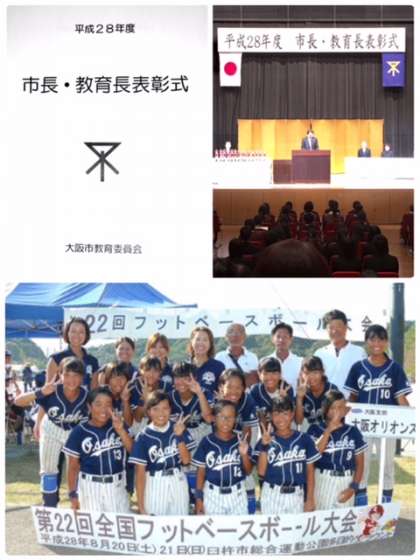 表彰理由は、平成28年8月20日〜21日に開催された「第22回日本フットベースボール全国大会 臼杵大会」で優勝です。