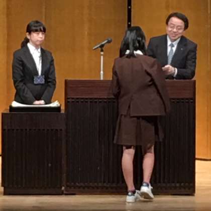 本校、6年生の鈴木真花さんが、教育長表彰小学校の部(個人の部)で、大阪市教育委員会山本晋次教育長より表彰を受けました。