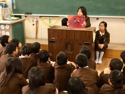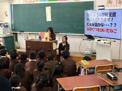 4年2組の読書タイムの様子です。今日は図書係さんが、紙芝居を読んでくれていました。