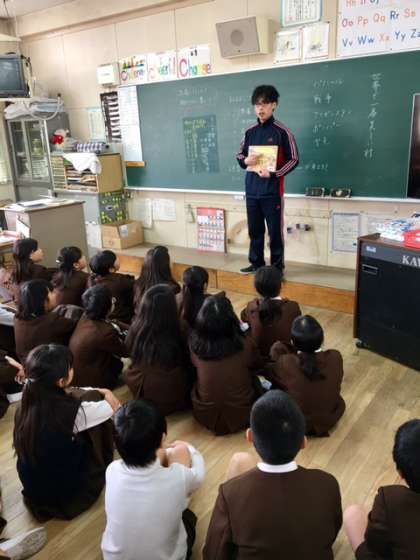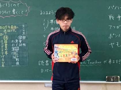 5年2組の読書タイムの様子です。教務主任で、6年生担任の三好先生が読み聞かせをしてくださっています。読み聞かせを始める前に、子どもたちに色々と質問をして興味・関心を高めてくれています。読書を深める指導です。