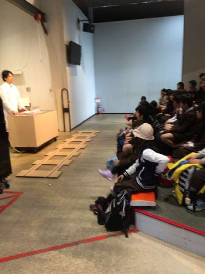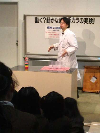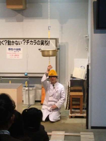 サイエンスショーが始まりました。科学実験に子どもたちは興味津々です。