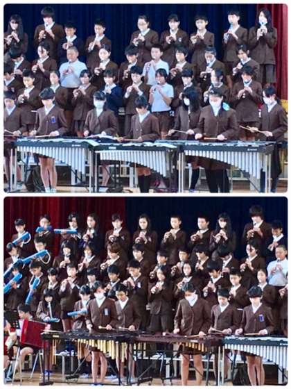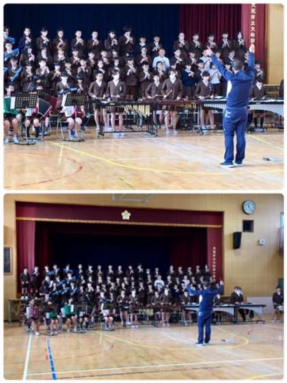 6年生も3クラス合同で「卒業を祝う会」の器楽合奏の練習をしています。学年全体で合わせるのは今日が3回目だそうです。1回目の合同練習に比べて、ずいぶんまとまって来ました。