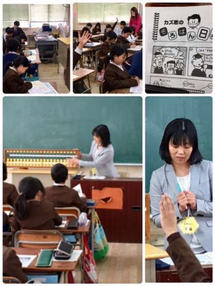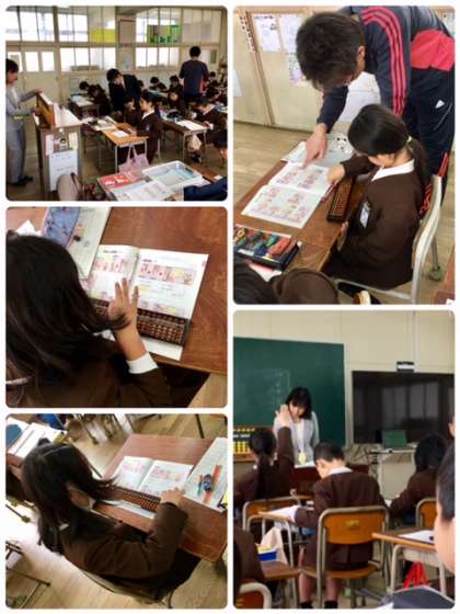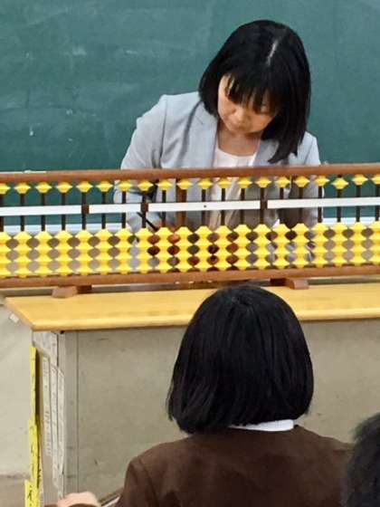 3年生は出前授業で「珠算授業」を受けています。大阪府珠算教育連合会より、今福知子先生がお越しいただきました。