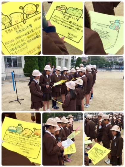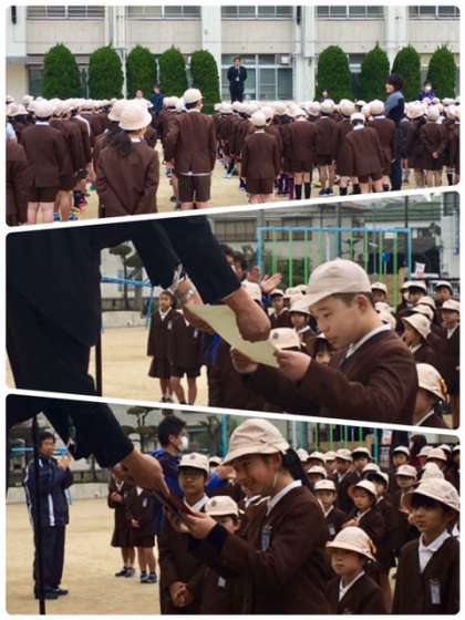 月曜日の朝は、児童朝会です。梅花の季節から桃花の季節へ移ろいました。さて、今朝は「第34回大阪市子ども文化祭」で大和田創作エイサー部の子どもたちが最優秀を受賞したことの披露・伝達表彰、給食委員会の表彰がありました。
