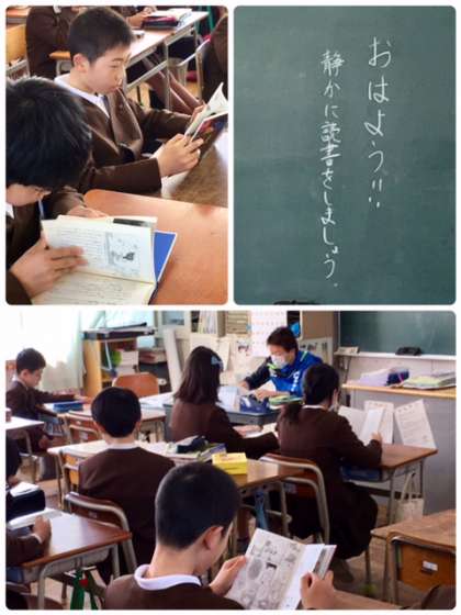 読書タイムの様子です。いつきても静かに本を読めています。チャイムが鳴っても、切りのいいところまで読んでいます。学級文庫に並んで本を戻します。