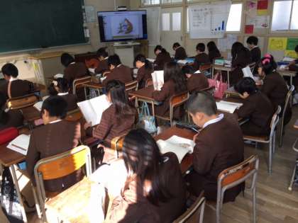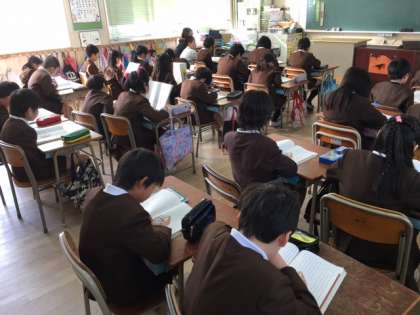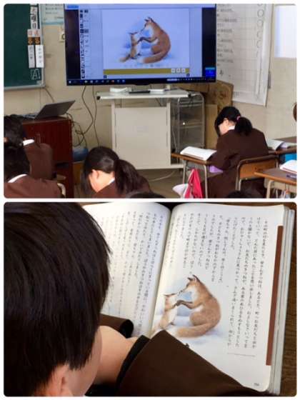 3年2組の読書タイムの様子です。デジタル教科書の読み聞かせです。