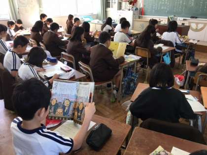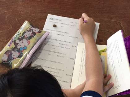 4年1組の読書タイムです。時間の最後にアンケートをとっていました。
