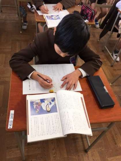 6年生は卒業間近になりましたが、テストに励んでいます。教科書を開いてテスト?と思っていたら、教科書の本文を読んで問題文を読み解く内容だと聞きました。小学校6年間のまとめです。