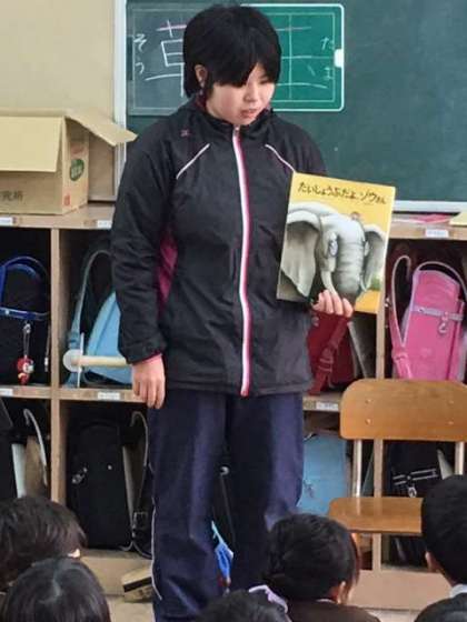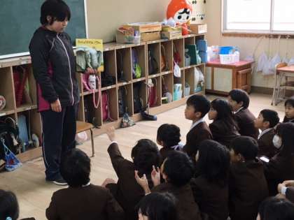 1年1組は、担任の守島先生の絵本読み聞かせです。