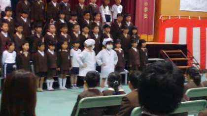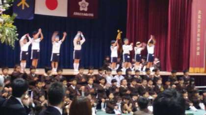 歓迎の会では、合唱、ダンス、昔遊び、縄跳び、呼びかけと立派に披露し、会場内から拍手喝采でした。