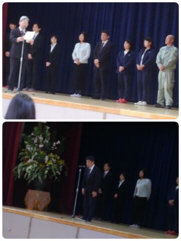 始業式に先立ち、転入児童の紹介と新転任の先生の紹介、転退職の先生の紹介を行いました。