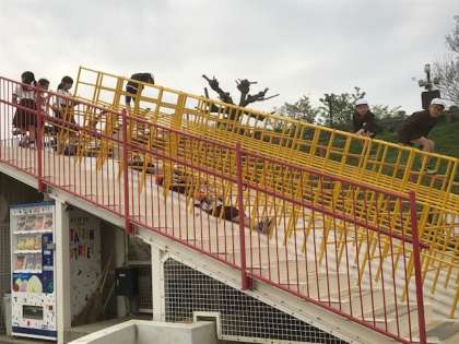 伊丹スカイパークは楽しい遊具がたくさんありました。みんな汗だくで遊んでいました。