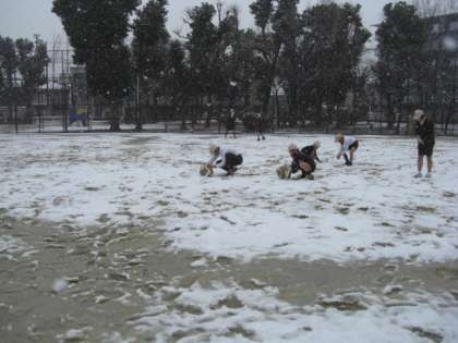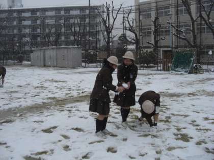 グラウンドでは、雪合戦をしたり、雪だるまを作ったりと大はしゃぎ!中には、いや多くの人は、なぜか私に向かって雪を投げてきました。とっても冷たかったです。ですが、卒業前に一ついい思い出ができましたね。風邪だけはひかないようにしましょう。
