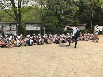 5月1日、5年生は、甲山森林公園に遠足に行きました。電車を降りて、目的地までしっかり準備運動がてら、登りました。