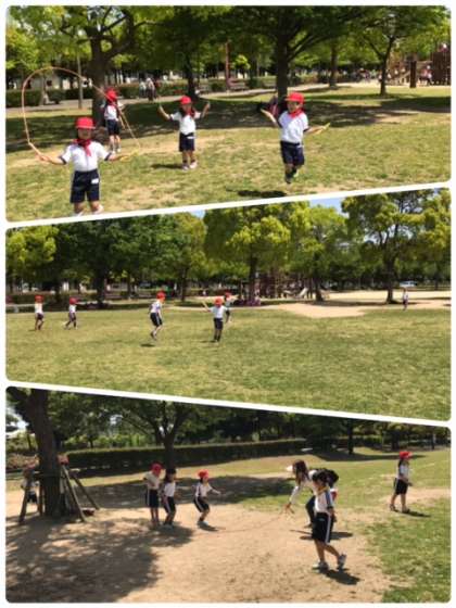 芝生では、ボール遊び、縄跳び、鬼ごっこ。