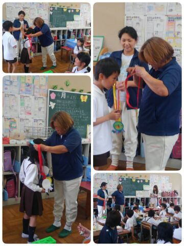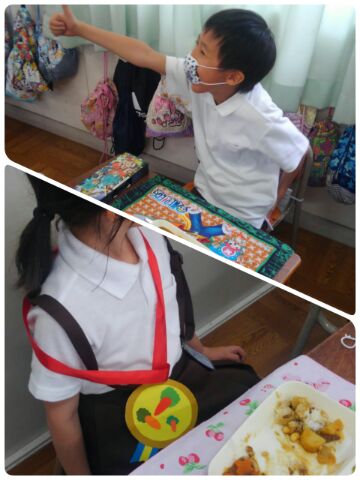 運良くラッキーにんじんが入っていた子どもたちには、給食調理員さんからのプレゼント、特製メダルが贈られました。