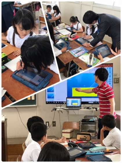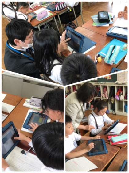 大和田小学校では、今年もICTに力を入れています。4年生の国語の学習の様子です。発表に向けて自分の意見や考えをタブレットでプレゼテーション資料を作っていました。ICT支援員の先生にも助けていただいています。