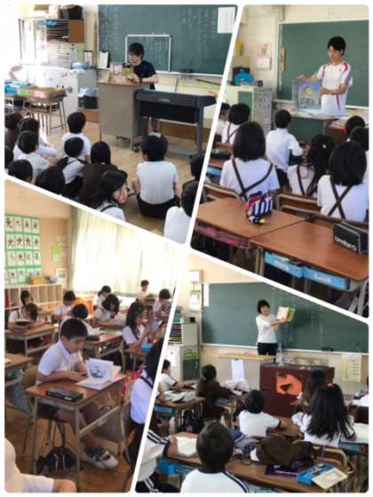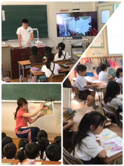 今朝の読書タイムでは、読み聞かせをしたり、自分たちで静かに本を選んで読んだりしていました。読み聞かせのスタイルも様々です。ICTを使い大型テレビにうつして読み聞かせをしているところもあります。1年生も静かに読書できるようになってきています。