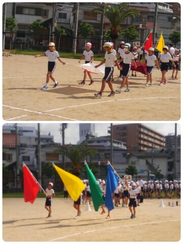 昨日の雨天で順延した運動会の全体練習の1回目をおこないました。