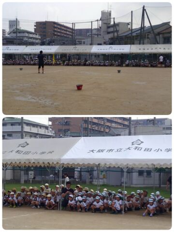 昨日、先生方がテントを張っていただきました。これで、子どもたちは日差しを防ぐことができます。